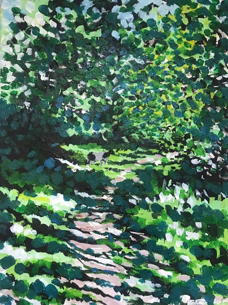 In this painting, i highlighted the abstract of cow in green landscape. I used acrylic on canvas