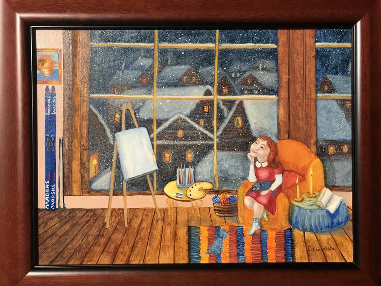 This painting is all about me in winter. I love painting, skiing, reading, knitting and dreaming.