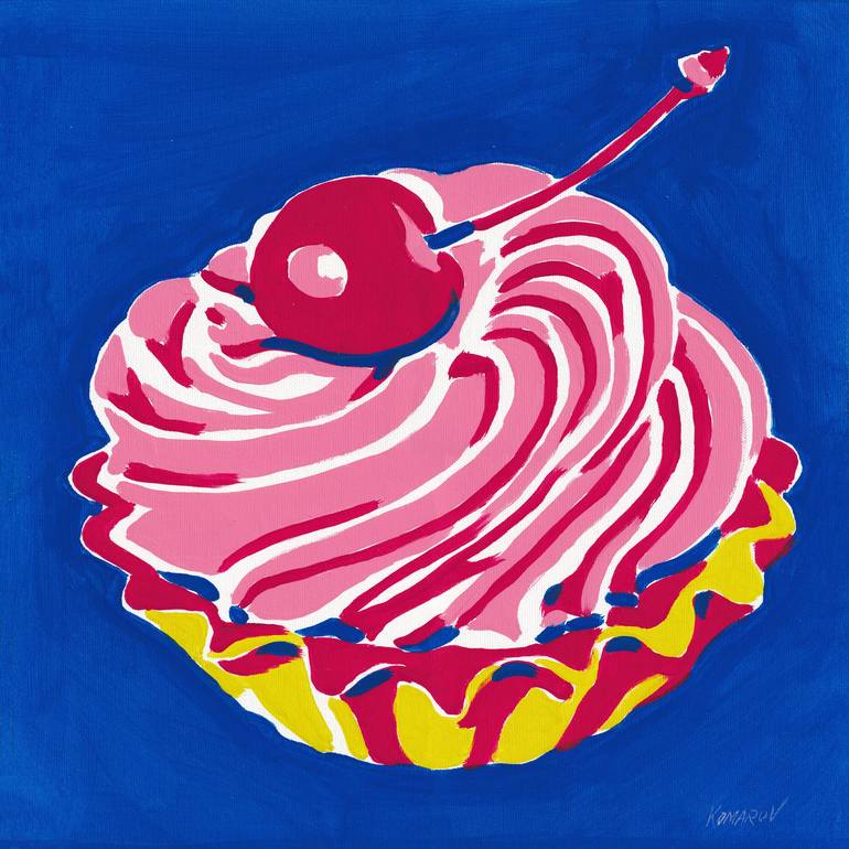 Cream tart oil painting cake sweet food kitchen cafe colorful Painting