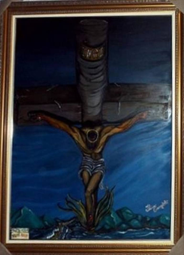 cristo - e abaixo a travessia de moisés,conta nessa tela, após a travessia do mar vermelho, um milagre. ainda sim muitos anos depois. crucificaram jesus que está no surrealismo.