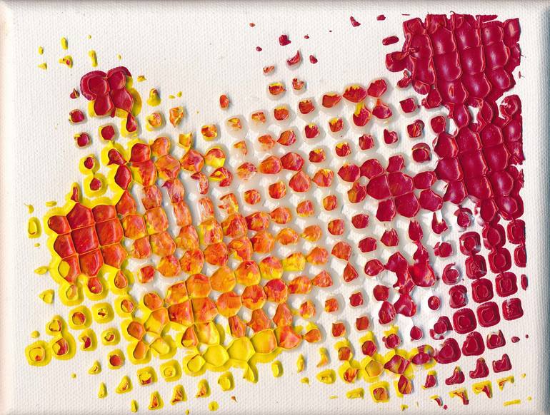 Signed and dated on the back. This artwork belong to a series of 20 small sized painting I made for the purpose of a small sized works exhibition in 2018. The process is the key to understanding this line of work. I use an orthogonal metallic grid as a matrix throught which I make the painting cr...