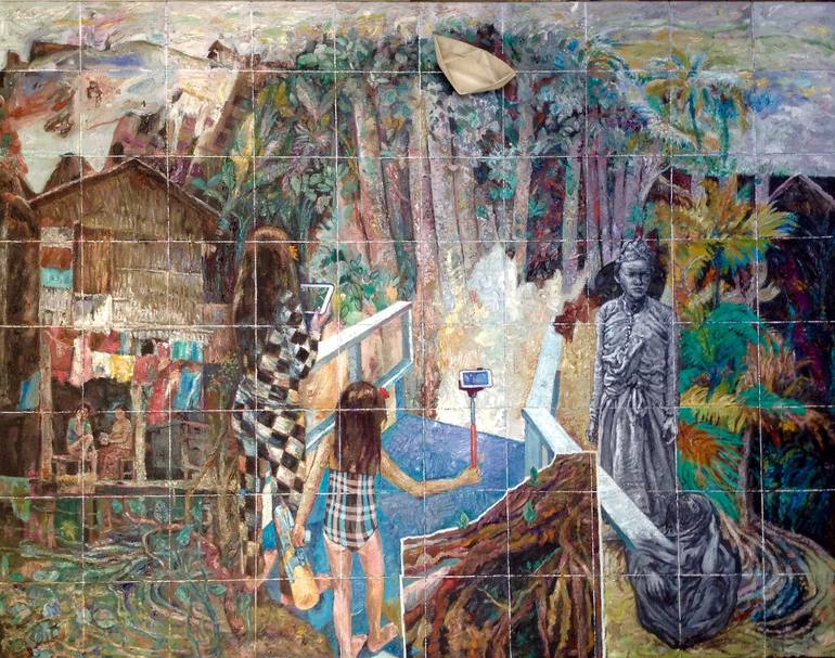 The vision and concept that inform Edwin Jumalon’s art practice is not the depiction of nature or the linear recording of life experiences. Rather, it is finding the way of shaping incidental narratives through recontextualization of imageries. His liking for synthesis is the factor that makes his art come to light- that which adds up to permitting free rein to the imagination. Eliciting nonrational, divergent, “accidental” messages to unfold in the process, Jumalon’s subject takes place during the act of painting. He juxtaposes images from memory, photographs, nature, and drawings - not of nostalgia, but of spatial play, building up the work and inventing the subject matter. He aims for the composition to be holistic- not to reconstruct sentiments or to rescue memories but to present as effect of the spontaneous excursion with perception. Jumalon lets out unintended narratives to emerge in his paintings...narratives that evoke, rather than describe.