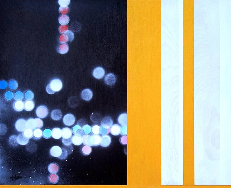 Two worlds are colliding. In the middle of the night when darkness rules, man turned city lights on and went out to party. He forgot to rest because he was so drunk with hype. Nature was still (wood with its grain), offering refuge to those burdened with noise and chaos. Some things are golden, like...