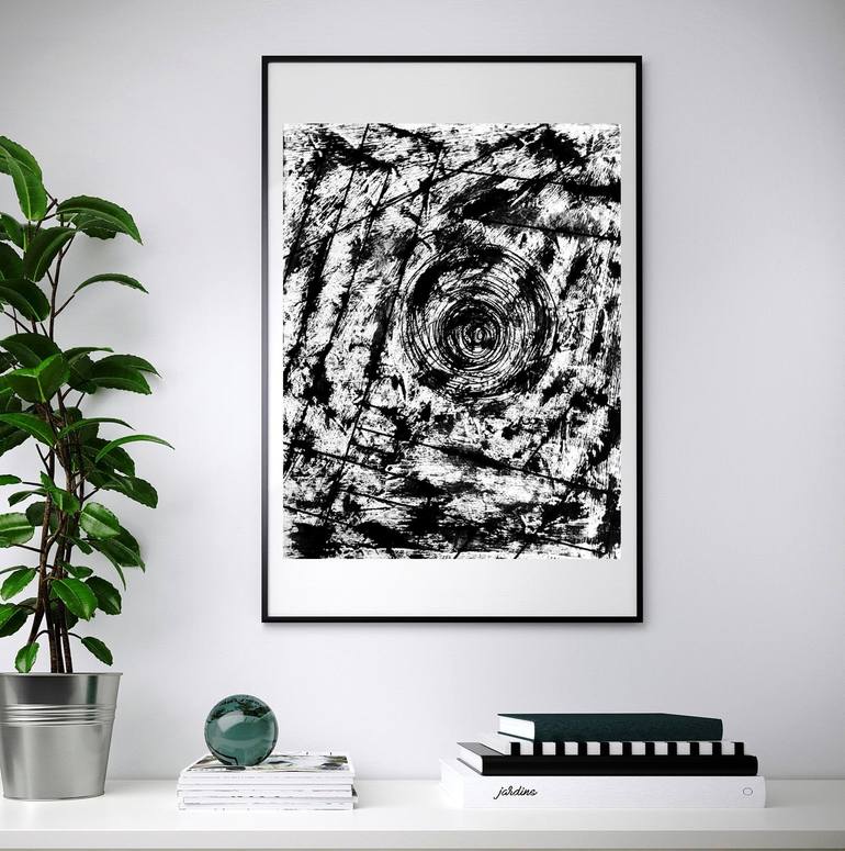 Black white cubism & geometric oil painting "GS III" Dimensions: height 52.5 cm (20.47 in) and width 42.5 cm (16.53 in). Materials: black oil, bright white acrylic, black marker, palette knife, very thick and sturdy paper (why I use paper and why it is better than other materials, read below). ...