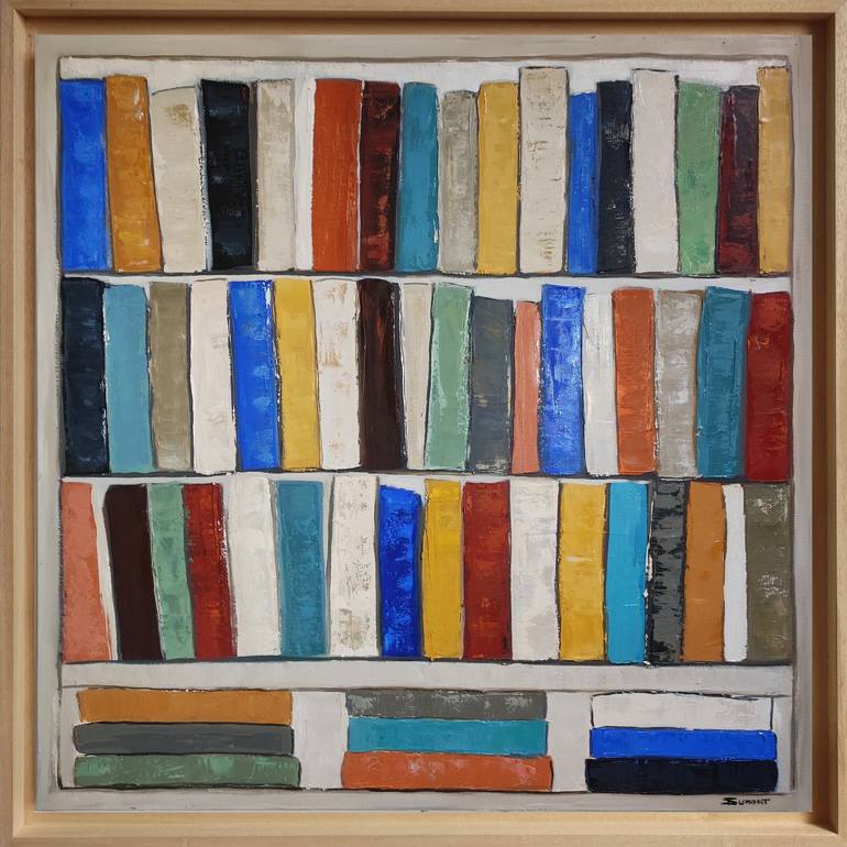 Sophie Dumont, an internationally acclaimed artist celebrated for her exploration of themes related to knowledge and cultural transmission, delivers a vibrant and structured piece with Cultura. This oil on canvas transcends the simple depiction of a bookshelf, transforming it into a celebration of c...