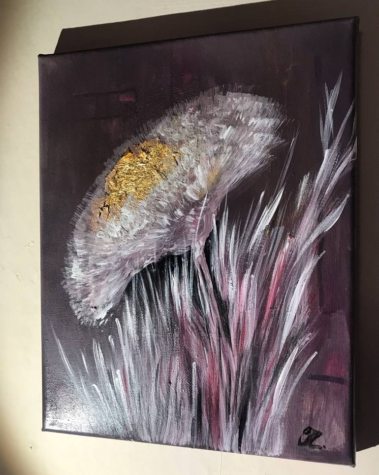 Cuore sacro is made on canvas using tempera and paper. Gold paper is used for the heart of the flower. This represents the power and the beauty of the nature. It’s the smallest of my paintings but it’s very expressive and I hope to give viewers an emotion.