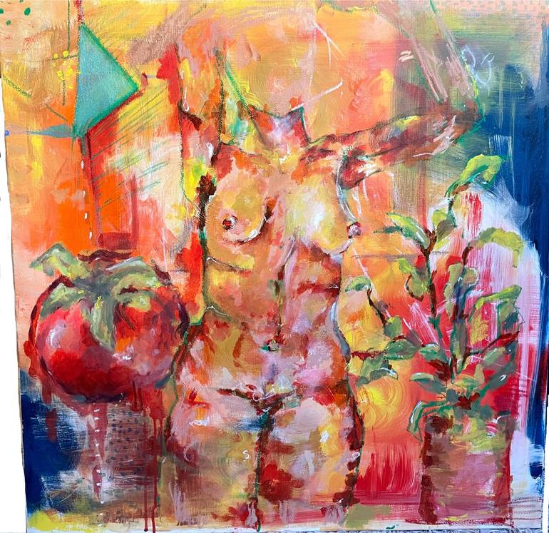 Cette oeuvre est inspiré de profondes formes humaines de la nature et des émotions. Celles d'une relation entres les différents éléments naturels et la relation entre les corps humains. Les couleurs vives sont guidés par l'émotion et l'intuition. L'identité, la vulnérabilité ou même l'objectificatio...