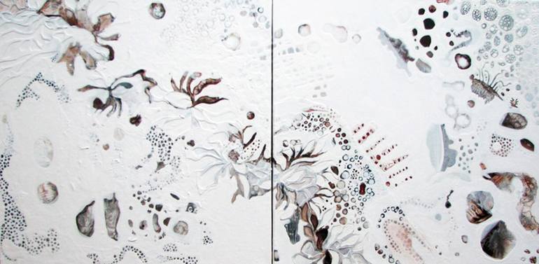 This is an example of Billie's Abstract Organic painting. Although she usually works on handmade traditional gesso panels that can be incised and layered in texture, this series she experimented with cut out layers collaged onto canvas. Inspired by her travels to extremely varied natural environmen...