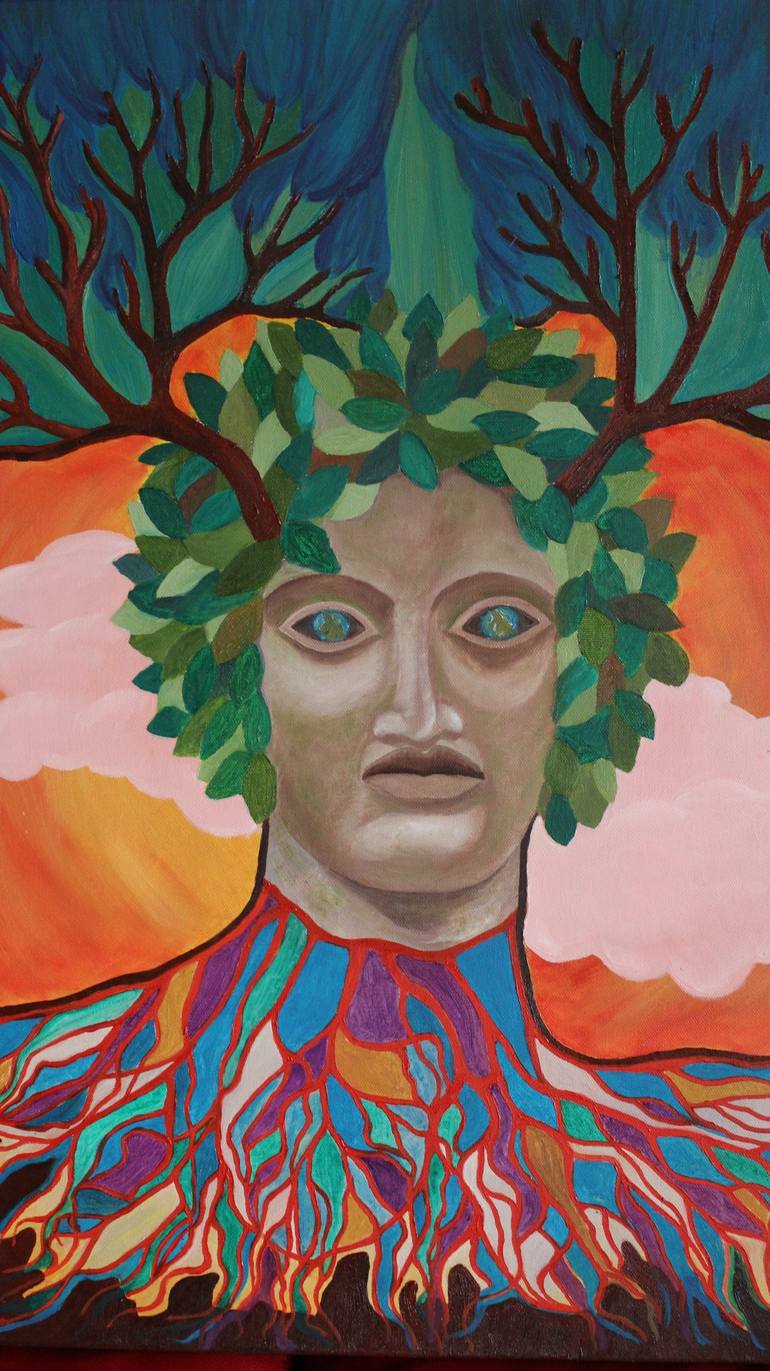 This paintings illustrates that we should not neglect and take care of our natural resources.Especially our trees ,illegal loggers cut them relentlessly and destroying our nature.I used the human face and body to represent tree as a human being they live.