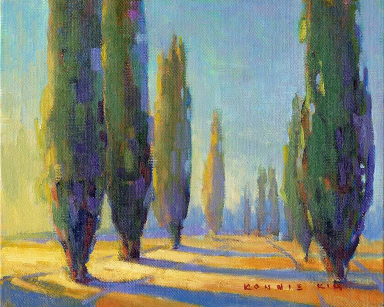 Inspired by nature, Konnie Kim paints in bold and radiant colors. She is drawn to many works of the Fauves and the Impressionists. She is also fascinated by the honesty and spontaneity of children's art. Her calligraphic brush strokes and interesting use of colors are what the collectors love about Konnie's work. Konnie's earlier work reflects her curious personality. She has explored almost all available medium and styles of fine art and graphic design. At the age of 19 she realized her first commercial success with licensed illustrations for a manufacturer and she is currently licensed with others. While in college she coordinated fine art shows in non-traditional settings for herself and other artists. These became known as "Any Space Shows". The venues included hotels, restaurants, schools, theaters and galleries eventually totaling over 100 shows. Konnie has received numerous awards and her work has appeared in trade magazines, newspapers, TV shows and online venues. She has worked as an art and framing designer/consultant for wall décor manufacturers. Konnie owned an art gallery and frame shop for eighteen years. In 2007, she sold the business wishing to devote more time to art. Konnie has coached many artists on painting and marketing. She is always in a learning mode and has dedicated her life to learning and sharing her knowledge with others. Occasionally, she will explore other media and styles to grow as an artist but her primary focus is landscape in oil. Konnie's original paintings and reproductions may be found in galleries and gift shops as well as private and corporate collections.