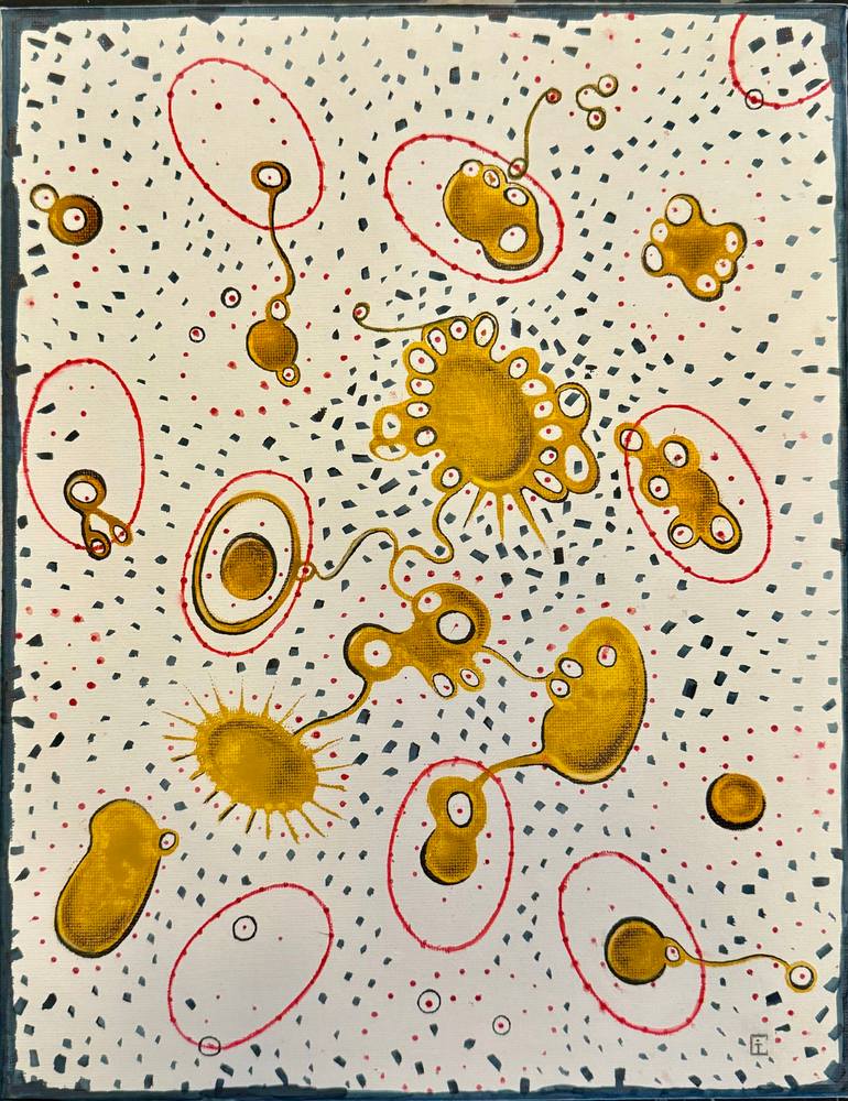 I was inspired by Cytokinesis, the cell division process. This work is about movement and transformation.