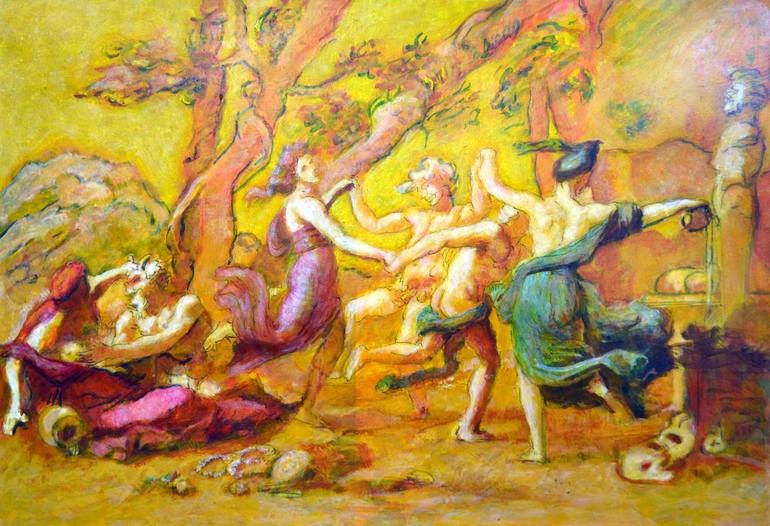 HOMAGE TO NICOLAS POUSSIN by Herve Constant Like his colleague Claude Lorrain, Poussin depicted historical and mythological subjects in landscapes inspired by the countryside around Rome. His themes were often complex, and frequently incorporated allusions to classical texts. Here, a playful cupid ...