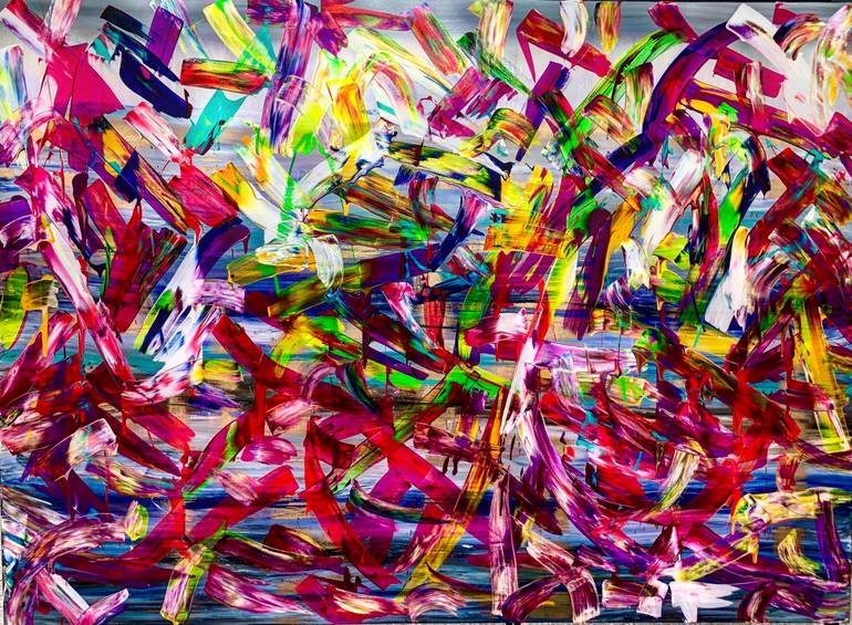 This is a power piece. I say this because it demands attention. It is an awesome original painting on canvas over internal wooden stretcher bars. Colorful, Beautiful, my FAVORITE piece in my collection right now. Photos do not do it justice. This is a show stopper. I probably have this priced way to...