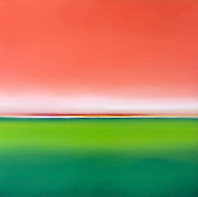 Bright energetic abstract seascape with a minimalist colorful gradient. Original oil on canvas painting perfect for modern interiors and contemporary spaces. DEEP INSIDE is a middle size abstract seascape from my Horizon of Emotions series – an energetic, minimalist gradient oil painting created to...