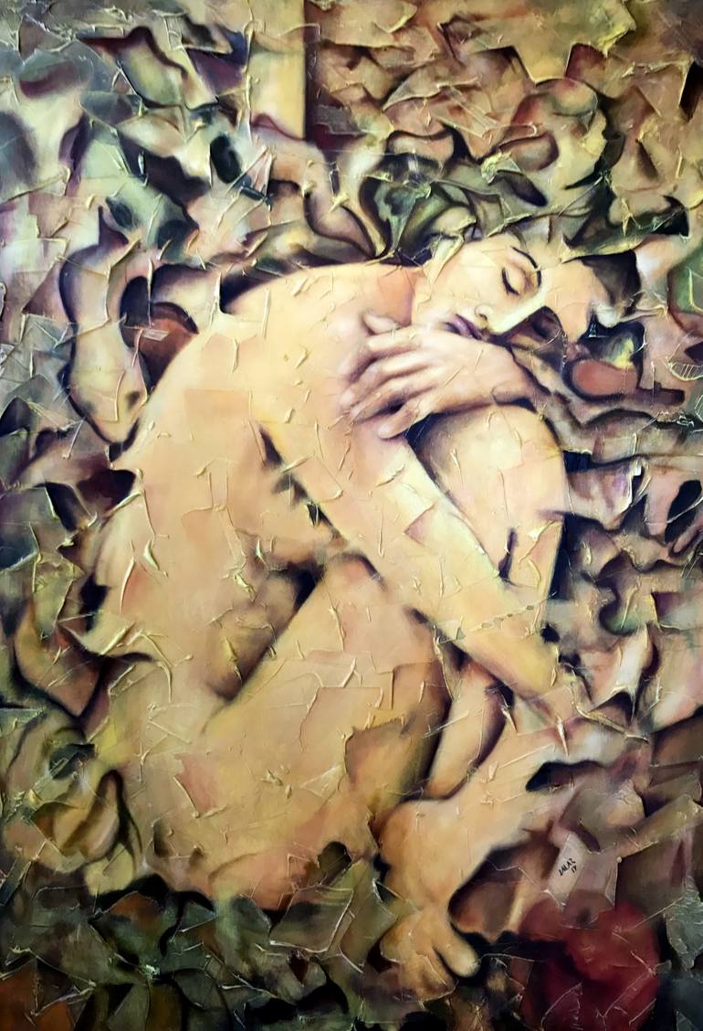 Obra realizada en técnica mixta con espátula sobre madera, recreando a ese personaje maravilloso de la mitología hebrea: EVA.