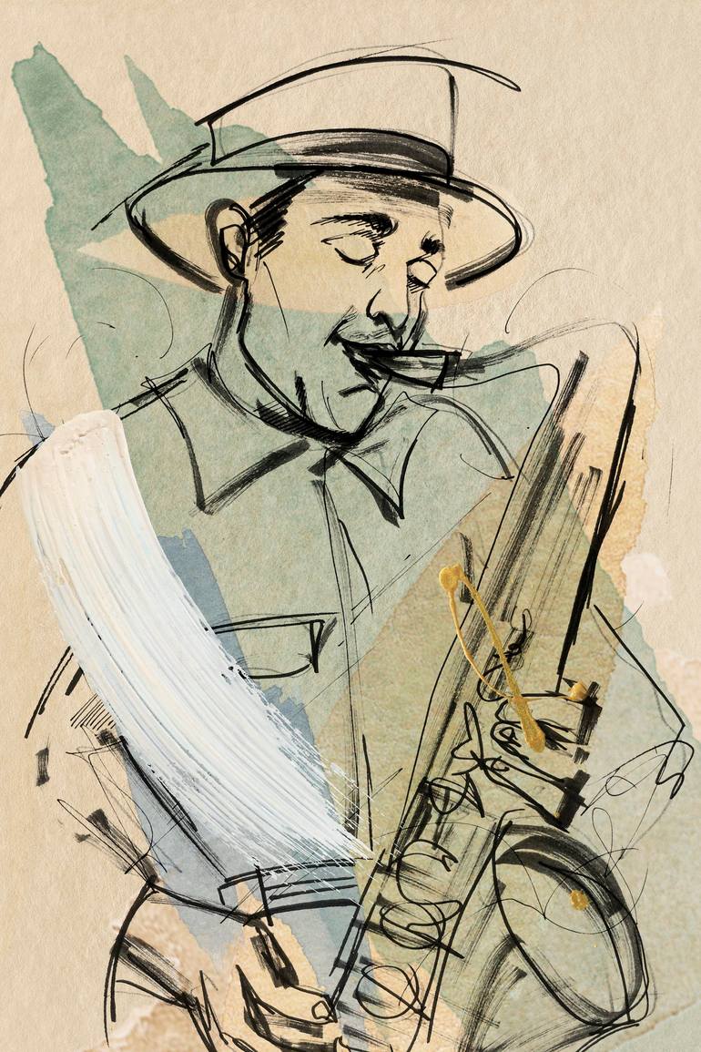 Dexter Gordon made magic with his saxophone, music and movement are such a beautiful artistic ensemble that he could only become inspiration for painting production. The softness of the watercolor plus the dense brush stroke of gouache.