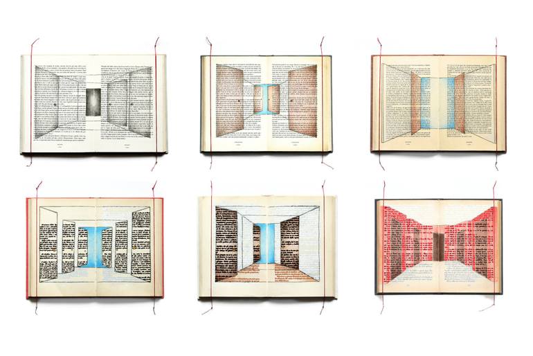 Books vividly pictorialize our stories, dreams, fantasies, desires, emotions, joy and pain, happiness and sadness, our fears but also love, passion and hope ... briefly, our whole life. The threads trace or caress the writing with their colors, multiple knots and weaving patterns, trying to orientate emotions towards different interpretations. The world maps and other geographical maps, plotted by numberless tight threads, represent our lives that are mutually intertwined, often without us wanting it, in the silence of words or in the music of time. Dado Schapira