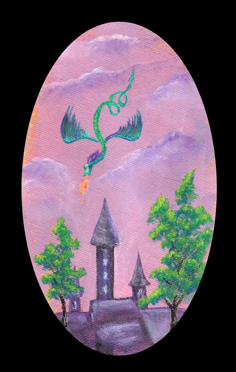 Save it by favoriting it? Thanks a bunch for supporting me ♥︎ Familiar character and surroundings: a dragon at the castle. Development of events at the discretion of the viewer. What do you think is the incident? This artwork is painted with acrylic on canvas. The original is in a private collecti...