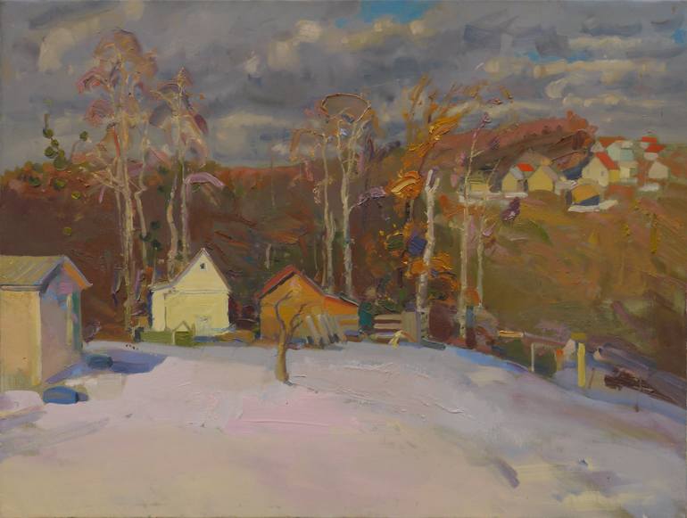 The snow sparkles in the bright sun. Frost made the air transparent, and the colors - bright. In Kiev, next to the Holosiivskyi Forest, on the slopes of the hill there are small houses-cottages. Such is the Ukrainian exotica.