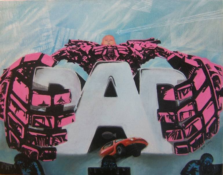 Its a small work but it packs a punch.I purposefully made it small to 'combat' the huge push for unlimited and unfettered male power in our western dynasty (the hint is that it disguises actual powerlessness)Its housed in a massive glossy white frame.Hopefully it is funny as well.If you want to star...