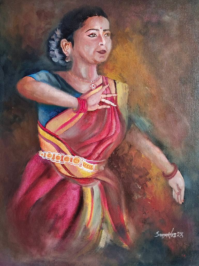 I Created this artwork buy using oil over the acrylic colour, Iwant to capture here the traditional art form with a abstract essence with different colours in the background of the main subject -that is the woman dancer.Here the beautiful gesture of the dancer is reflecting upon through the whole pi...