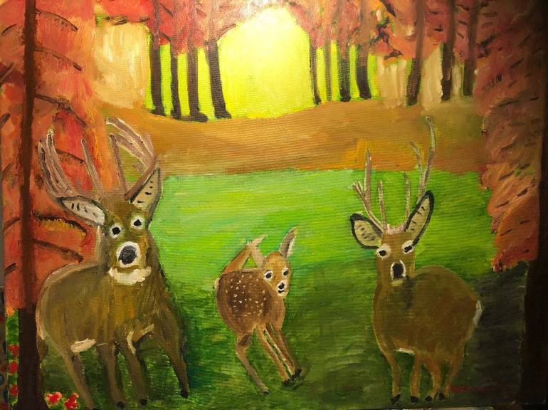 This is the fourth painting in my series on Nature's Dancers. It is about a carefree rambunctious fawn. Dancing with joy. It is oil on canvas