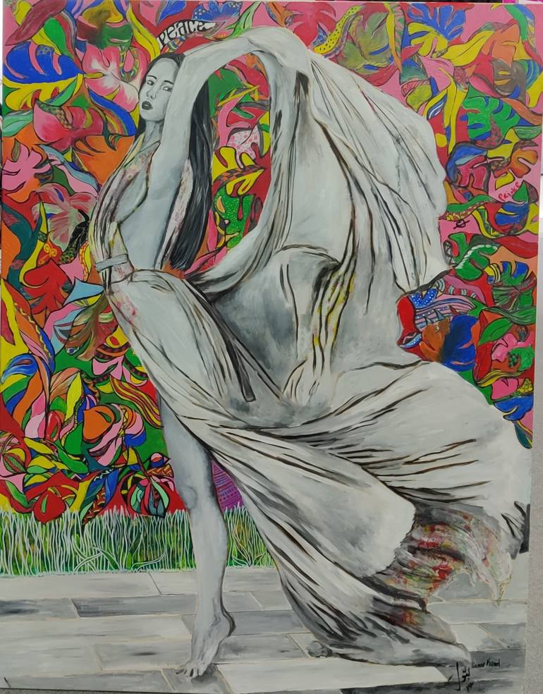The artwork transports you into a world of rhythmic movement and artistic expression, capturing the essence of elegance and passion. 🎨✨ Each brushstroke captures the energy and spirit of her dance, conveying a sense of effortless grace and captivating motion. 💃🖌️ The artist's skilled use of col...