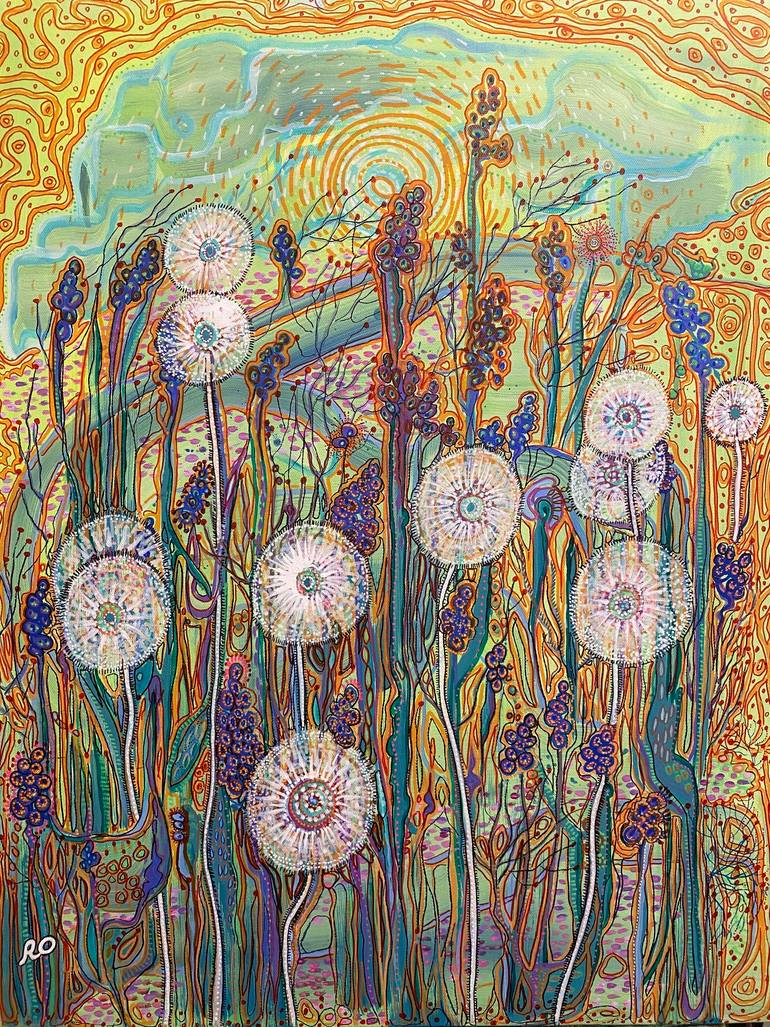 Original painting "Dandelions” Size: Height 30 x Width 24, Depth 0.6, Inches. Materials:Acrylic on canvas, acrylic pens. Subject: Flowers. Style: Impressionism, Contemporary, Modern, Decorative. August 21, 2023. The painting "Dandelions" was included in Saatchi Art weekly selection "Ne...
