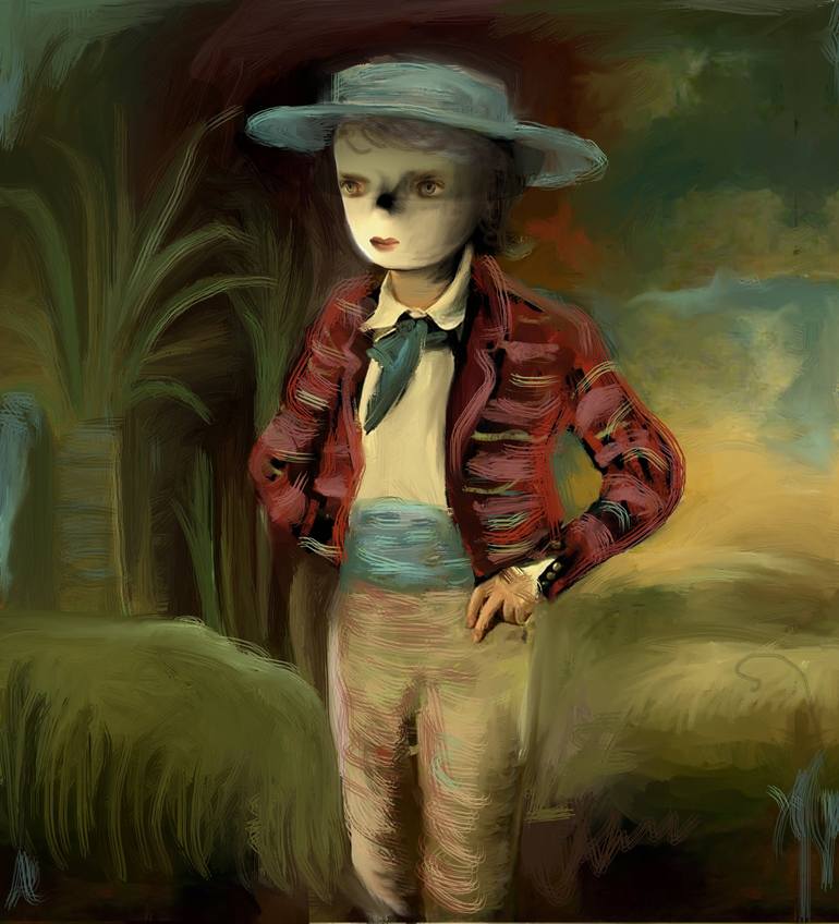My prime motivation for painting is quite simply the actual mental and physical process of creating an image. From the initial inspiration and development of the idea, using a combination of traditional drawings and sketches to digital collage and iPad drawings culminating with the final oil painting onto canvas. Striving throughout the whole process to capture the core essence and mood of the original concept but also open to the idea of taking the image to somewhere I hadn’t imagined. I divide my time between London and Cortona, Italy these contrasting locations provide much inspiration.Themes that I attribute to this hybrid life of city and countryside include man’s fleeting embellishment of nature, the ivy covered ruin of castle on a hill beyond the motorway, slicing through the landscape. I am interested in the idea of ‘once upon a timeness’ of life, it’s stories, memories of childhood real and semi imagined, with its hovering and presence of a half-understood world.