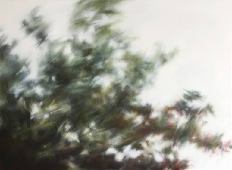 This painting is the second in a series of two and celebrates lovely subtle hues in variations of greens and blues, accompanied by neutral colours with hints of pink. I wanted to capture a close up view of the gentle movement of a breeze through branches and the play of light that reults. I remembe...