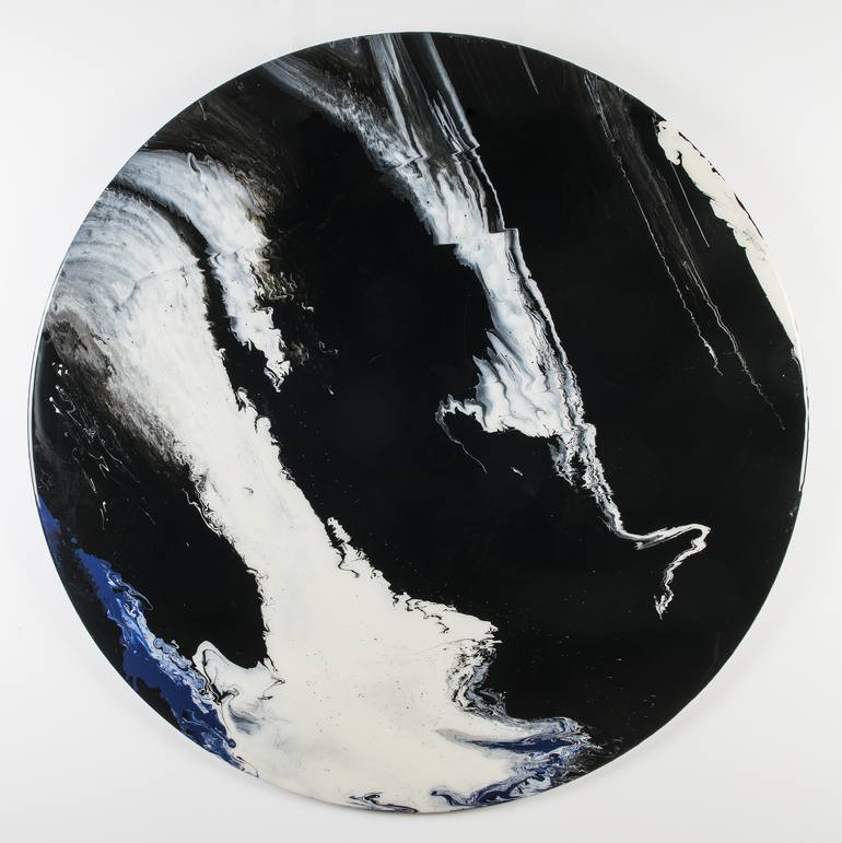 This painting was inspired by photographs taken from space. It was created by pouring gloss paint onto the board and building up the image in layers, allowing the paint to interact and flow together. The painting was then covered with a thick layer of clear resin which gives it a glassy, sculptural ...