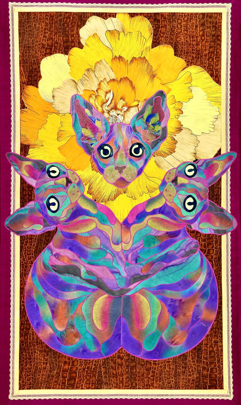 The artist's priority is the quality of the performance. Three types of Bursa silk are used in the work. The work is embroidered on thick canvas, three layers of adhesive fabric "ironing" Between each layer plus a web of adhesive fabric. All the work is glued together into a single monolith . The pa...