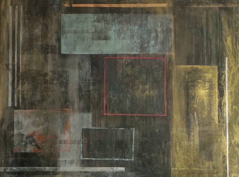 As a basis for the picture, I use mixed media with photopotch from old pictures and rolled acrylic paints. In doing so, structures are condensed to the point where they build up lines and shapes. Before I put a point on the canvas, it already exists as an idea in my head. To connect the points, I dr...