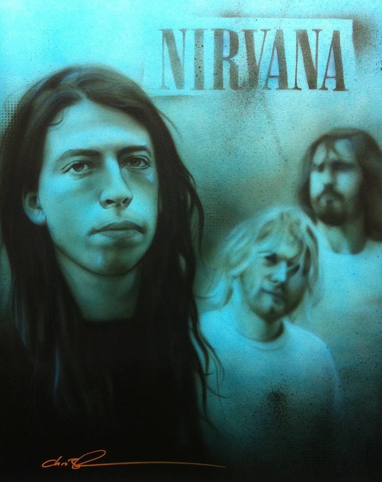 Original Acrylic Airbrush on Framed Canvas Dave, Kurt & Krist is an original painting of the band Nirvana by Christian Chapman. Buy the original painting and get an exclusive Certificate of Authenticity signed by Christian Chapman himself. We also accept custom, commissioned artworks and can pa...