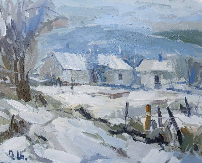 ACRYLIC/CANVAS Size - 40x50cm READY TO HANG Original oil painting, 100% hand painted on canvas. Come with signed certificate of authenticity. Snowbound Village breath captured in serene, painterly strokes. This acrylic painting transports us to a tranquil rural village, hushed under a soft blanket...