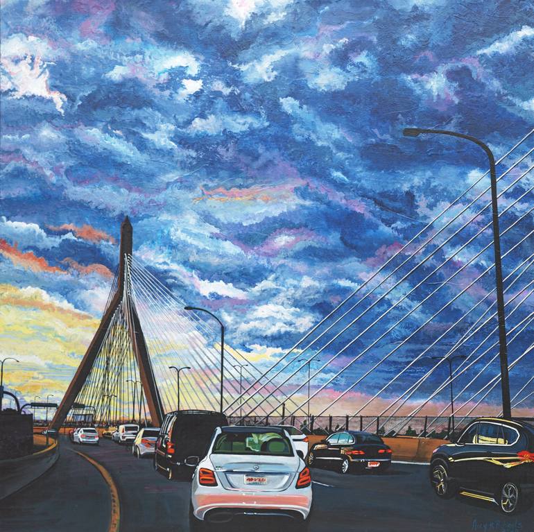Western Avenue Studios and Lofts 160 Western Avenue Loft 214 Lowell MA I grew up in the foothills of the Berkshire Mountains in Connecticut and began lessons with oils when I was nine. Now my chosen medium is acrylics because they work well in my traveling lifestyle. My path has offered the opportunity to live in several states, the Carolinas, California, Virginia, Texas, Hawaii, Kansas, and Massachusetts. My paintings have found homes as far away as Japan, Norway, and South America. The years I spent as a linguist in the US Army and a Marine Corps dependent gave me the gift of travel. Browsing my portfolio is holding postcards from my life. Hanging my work in your space is a window to something that clung to my heart and mind long after I moved on my path. I explore in ever widening rings from where I am, I am a witness to that time, that place. I have moved 19 times and lived in nine states. I am about finding the small spaces, hidden places and mercurial skylines, returning at different times of day. The effect of the light is of special interest to me. Reflections in water, glass, ice, a polished floor offer the kinds of challenges I want to master. I prefer working on a larger canvas, building them to complement the subject. I want to see a very small phenomenon grow mighty and beautiful. I stretch my own canvases using medium weight unprimed cotton canvas on Blick standard or Best heavy duty stretcher bars. I prefer to choose each painting's dimensions and shape. I prime my canvases with Golden black gesso. The final surface is protected with Windsor Newton satin varnish. I use Liquitex acrylics in soft and heavy body diluted with Golden airbrush medium, water and Golden acrylic medium gels. I trained for years in oil paints but switched to acrylics to accommodate my traveling lifestyle. WASAA Western Avenue Artists Association Artist Member Whistler House Museum of Art/Lowell Art Association Artist Member USVAA United States Veterans’ Artists Alliance Advisory Board Member