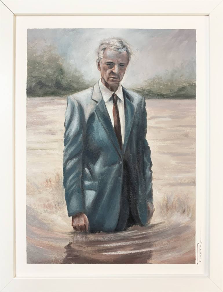Daydreamer Series Oil on Arches 300gsm Oil paper (Framed ) 2023 Decision making suites. Timed, as the water rises. Work photographed without plexiglass. Work sent with plexiglass installed