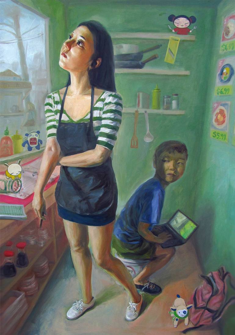 Janice Yang is a figurative painter and illustrator. She was originally born in Connecticut, but moved to South Korea at the age of four, and later returned to the U.S. at the age of sixteen. This cross-cultural experience has had an enormous impact on her life and work. She became interested in the human condition, the overlapping cultures and transformations that the world encounters. Janice’s figurative work combines narratives, symbolic objects, and abstract patterns. The process of art making has become her way of communicating with the world to explore and find her cultural identity.