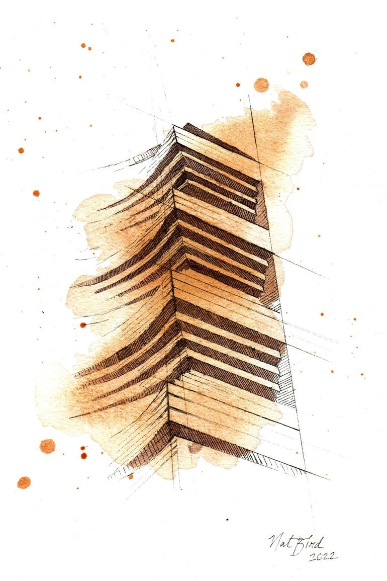 Painted by Natalie Burke, this original piece portrays brick details from Piet Kramer’s extension to the De Dageraad complex on Henriëtte Ronnerstraat. Using Black India Ink enhanced with watercolor and natural and traditionally ground pigments sourced from Verfmolen De Kat in Zaandam, this artwork ...