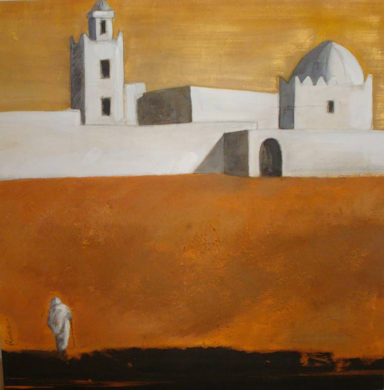 From Asia to Africa : Period abroad from 1998 to 2006. They are often religious ( Buddhas , monks , mosque, veiled women , people in prayer) religion is omnipresent in these countries. Acrylic and mixed media on silk paper pasted on canvas.