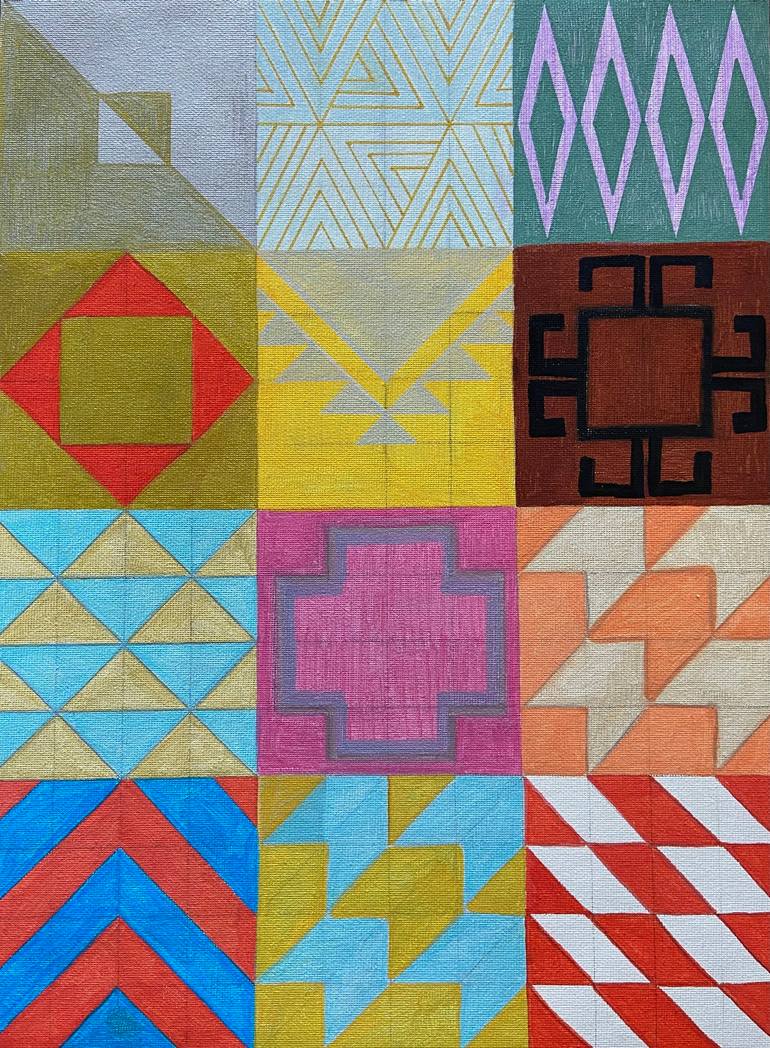 These paintings are inspired by the culture of my ancestors, indigenous peoples, from the north of Argentina in the Calchaquies Valley. Ancient cultures from different latitudes recognized and singled out geometrical forms present in nature that were constant. This appears in Pre Columbian cultures ...