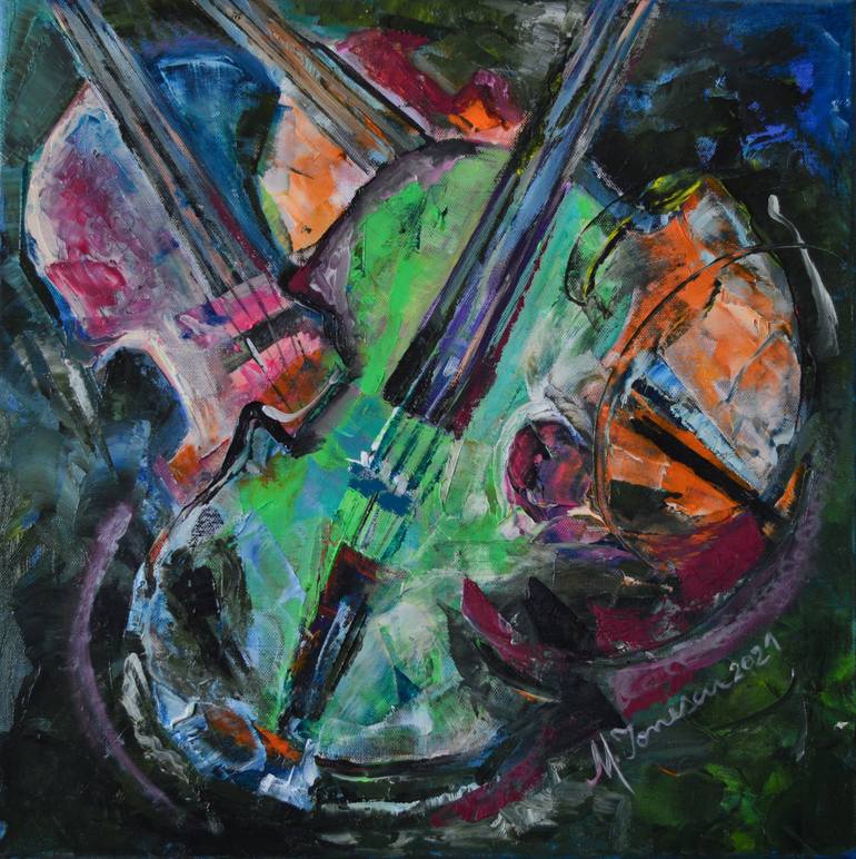 The sounds of the colors; every musical instrument has got many colors in their sound. The artist associates every music vibration with the different color in the universe. Oil on canvas, multi layered technique ( painting knife and brush ) , ready to hang, unframed but the edges are painted. Every ...