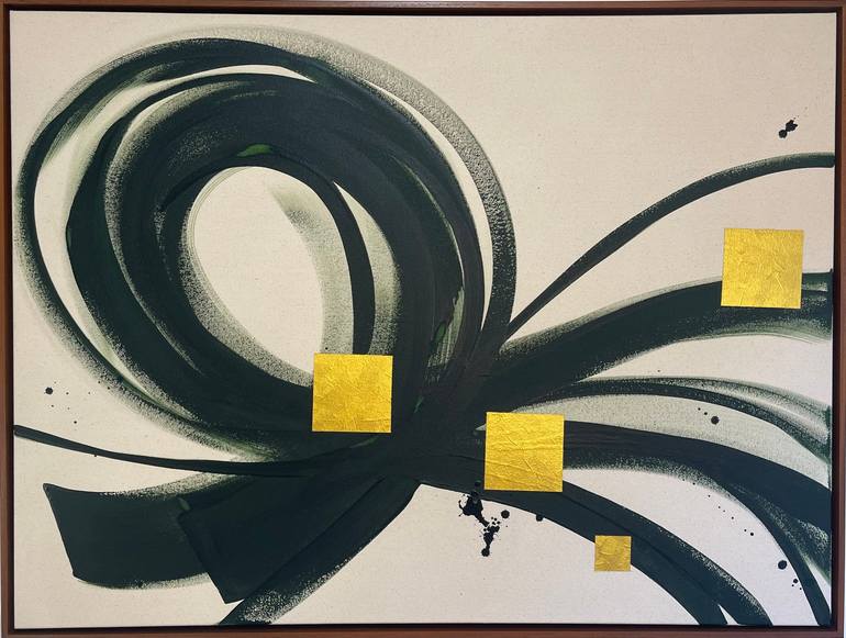 Deep Green Sea is a representation of my constant bounce between left and right brain...between the loose gestural blue forms and the hard-lined, metallic geometric shapes. I love the play of the two together and rich color and textures.