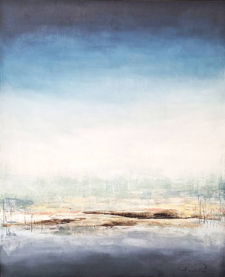 Deep Sky Size 100x120h cm Mixed media on canvas. Artwork ships ready to hang. Discreetly signed on the front and with authenticity . Nature inspiration, brings nature shapes and colors to abstraction. With great tones of blue and beatiful varnish finish . ****All of my paintings are one of a kin...