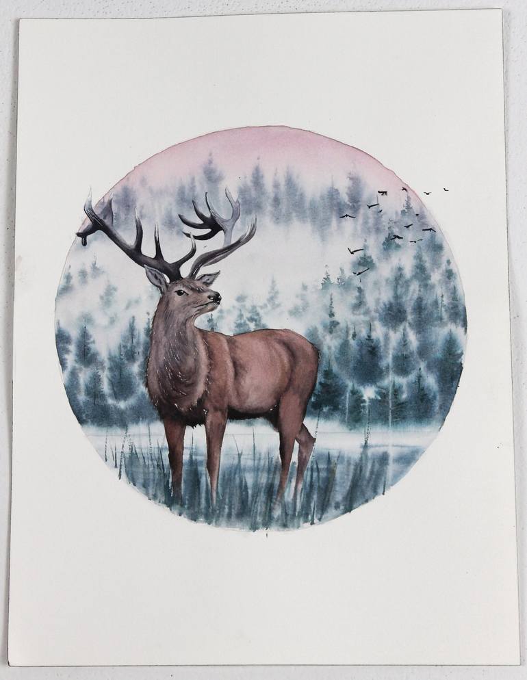 Watercolor painting "Deer in the Nature" that will be a perfect fit to decorate walls in your house/apartment.