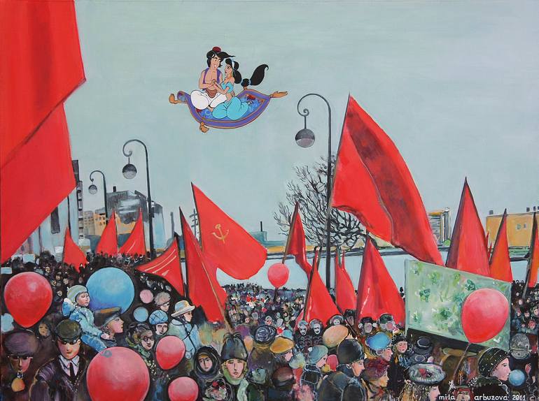 MILA ARBUZOVA Mila Arbuzova was born in Saint-Petersburg, Russia in 1973. Having graduated from Saint-Petersburg's University of Humanities and Social Sciences, she worked as a journalist at the different art and cultural magazines. At the same time she began her own artist's experiments. Mila Arbuzova spent her childhood in the downtown of Saint Petersburg. Her family lived in a block of flats in Grazhdanskaya Street where, according to Dostoevsky's famous novel "Crime and Punishment", the old female moneylender killed by Rodion Raskolnikov used to live. In Soviet times guides often showed foreigners the place where the legendary murder occurred. Maybe this location of the native house made an influence on the future artist. The art work of Mila Arbuzova is essentially  "Saint-Petersburg's": lyrical, strict, sometimes - tragicomocal, philosophical, serious and absurdist in the same moment. It includes a wide range  of subjects: the sarcastic sketches in the spirit of "social art" as well as the magical  fantastic pictures together with free compositions combining parts of realistic images in a surrealistic manner. Contemporary Russian Art despite its visual diversity tends to simplify so that its painting mainstream is becoming more and more schematic and conditional due to both accelerated tempo of modern life along with its formalization and current art market conjuncture. In contrast to this tendency works of other Russian artists tend to re-establish classical painting culture as independent elitist art form which can be appreciated only by the narrow circle of fans and art hedonists of special kind. Mila Arbuzova's paintings combine the realistic painting's techniques (including attention to details, subtle color nuances, harmonious composition solutions) with actual social issues, absurd sense of humor and lyricism. All these features traditionally characterize art of St. Petersburg. In her paintings the principles of both figurative and abstract art are incarnated. Abstraction, however, does not play a merely decorative role: you can be sure that it is integrated into the plot. All Arbuzova's work deal with a few major themes: politics, beach, portrait, sport and dance. Also Mila Arbuzova is an author and inspirer of the international women's art project "BIOWOMAN".