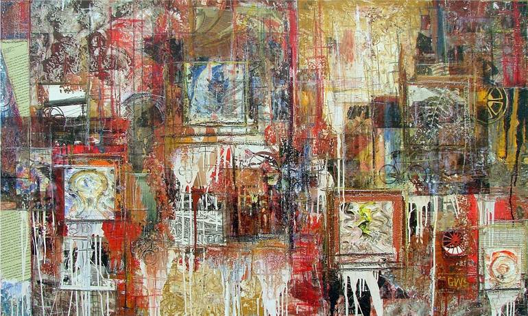 I make thoughtful mixed-media works that mediate friction between narrative and materiality. Novelistic pastiche and intuitive abstract painting confront each other in a bricolage of photographs, paint, and found objects. From a trace discovered in a few abject elements at the beginning of my process, I interweave strata, adding and subtracting components strategically or intuitively to create a quirky grammar of intellect and wonder. While my development has been steadily nourished by great mixed-media artists of the past, including Kurt Schwitters, Robert Rauschenberg and the Kienholzes, I'm also inspired by contemporaries like Fred Tomaselli, Julian Schnabel and Barnaby Furnas. Due to a lifelong visual impairment, I have access to the Library of Congress audio collection; the books I listen to while painting frequently inform my work. I think of my pieces as contemporary equivalents to religious icons, memory gardens or totem poles; abstracted story-boards in which the gaze explores systems of interpretation and meaning in a shared situation with the artwork. My practice seizes the narrative debris of Spectacle - advertisements with their flattened affect, litter, hyper-real media images, plastic paint - and humanizes them in matrices of personal symbolism. I strive to push the narrative element as far as it can go in materiality and, beyond merely illustrating, signify stories infused with broad, universal themes and questions.