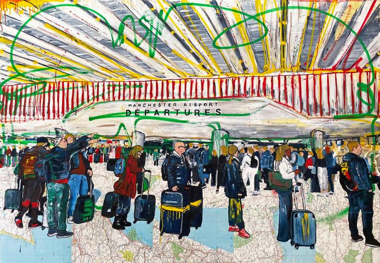 Inspired by my travels and love of urban landscapes, "Departures - Manchester Airport" captures the bustling atmosphere and energy of one of the UK's busiest airports. Painted in a realistic style with bold brushstrokes and vivid colors, this artwork invites the viewer to immerse themselves in the s...