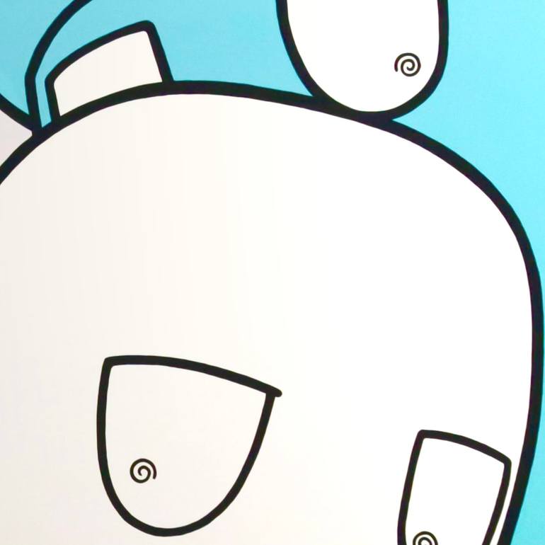 This painting captures a white and teal cartoon character side by side. A great piece for bringing a sense of fun and charm to any space.