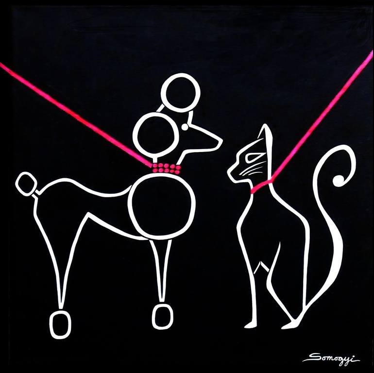 Détente: French word meaning relaxation of strained relations, especially political, by verbal communication. Animals talk with their actions, and this beautiful poodle with her iconic haircut and this elegant cat have reached an agreement to coexist peacefully. My feline and canine are done in a ve...